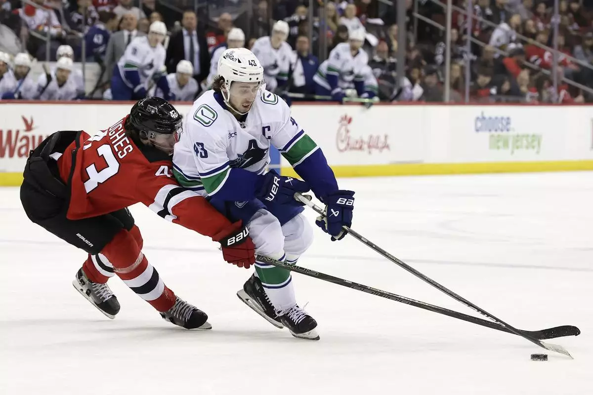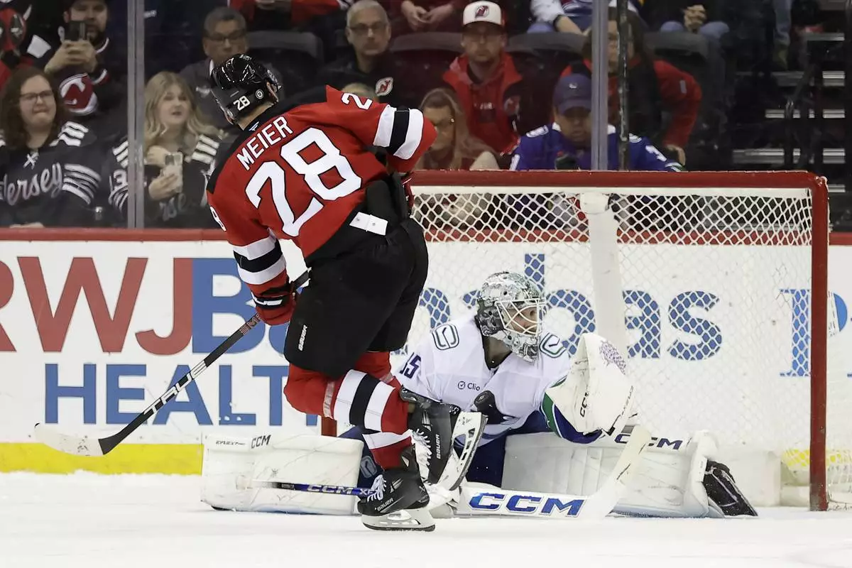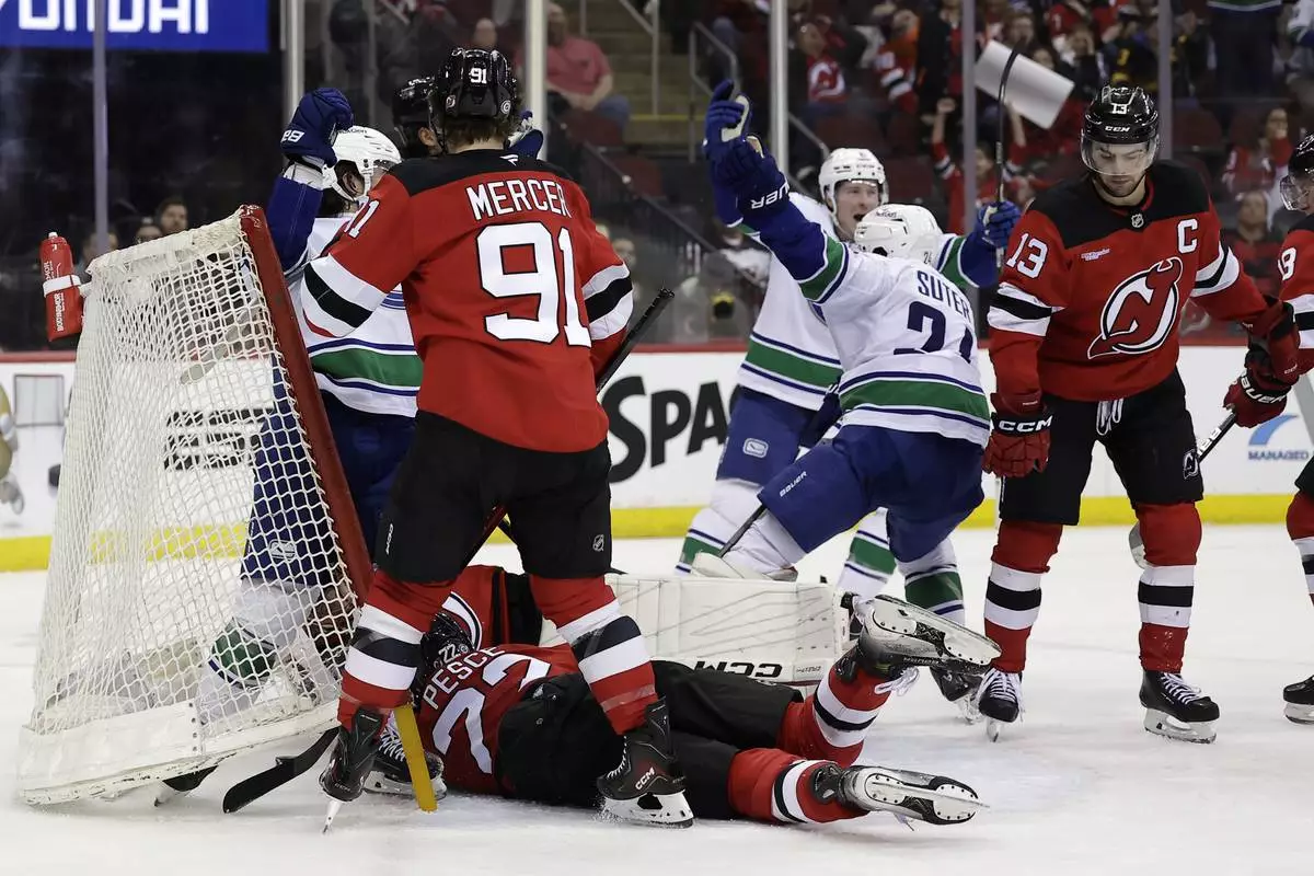 NEWARK, N.J. (AP) — Jonathan Lekkerimaki scored in regulation and got the deciding goal in the fourth round of the shootout, and the Vancouver Canucks beat the New Jersey Devils 4-3 on Monday night.