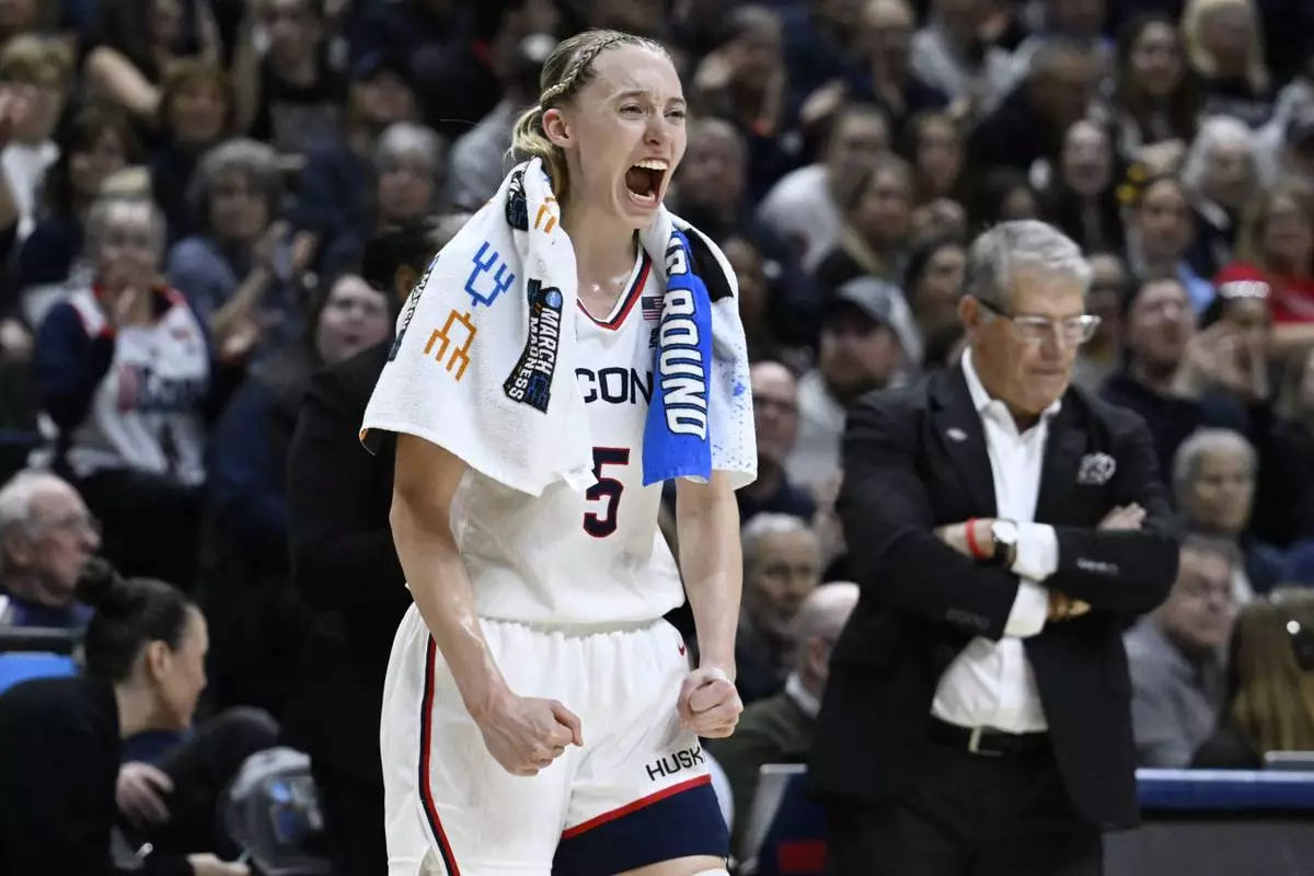 Bueckers grabbed a microphone and addressed the adoring crowd before walking off the Gampel floor for the last time. She is expected to be the top pick in the WNBA draft. Before that, she wants to lead UConn to four more victories and the program's record 12th national title.