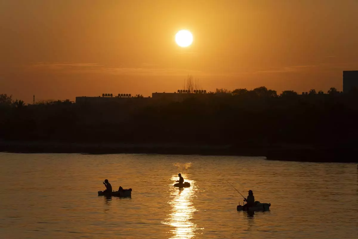 A man on a makeshift raft prepares to fish at dawn in Cojimar, east of Havana, Wednesday, March 12, 2025. (AP Photo/Ramon Espinosa)