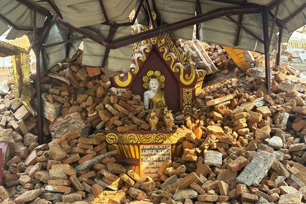 Damaged pagodas are seen after Friday's powerful earthquake in Naypyitaw, Myanmar, Saturday, March 29, 2025. (AP Photo/Aung Shine Oo)