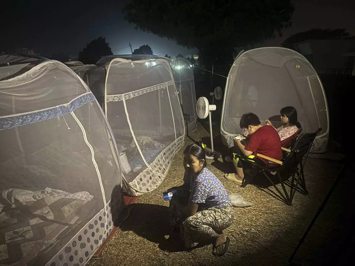 Local residents rest near their mosquito nets on a road in the aftermath of Friday's earthquake in Mandalay, Myanmar, Tuesday, April 1, 2025. (AP Photo)
