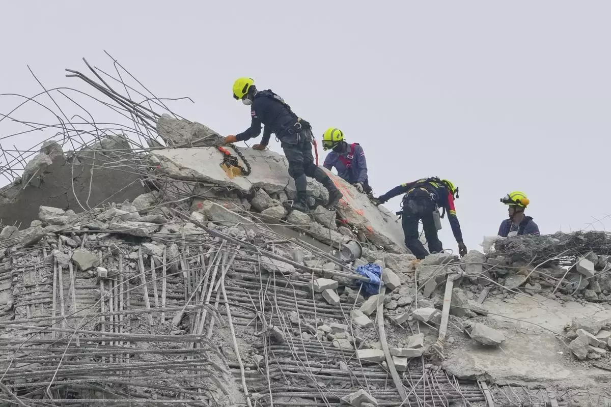 Rescuers work at U Hla Thein Buddhist monastery that collapsed in Friday's earthquake in Mandalay, Myanmar, Monday, March 31, 2025. (AP Photo)