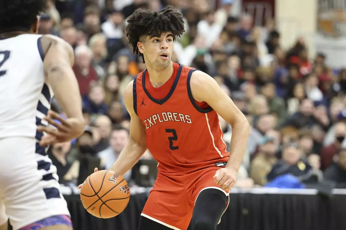 Christopher Columbus Cayden Boozer #2 in action against Sierra Canyon during a high school basketball game at the Hoophall Classic, Monday, January 16, 2023, in Springfield, MA. (AP Photo/Gregory Payan)