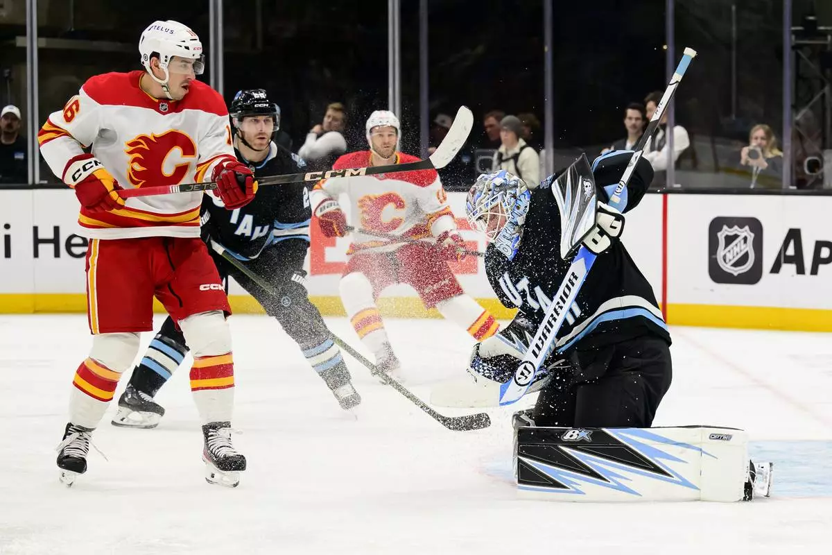 In the final seconds of a Calgary power play in the third period, Vejmelka turned aside Joel Farabee at the side of the net to keep Utah ahead with seven minutes left.