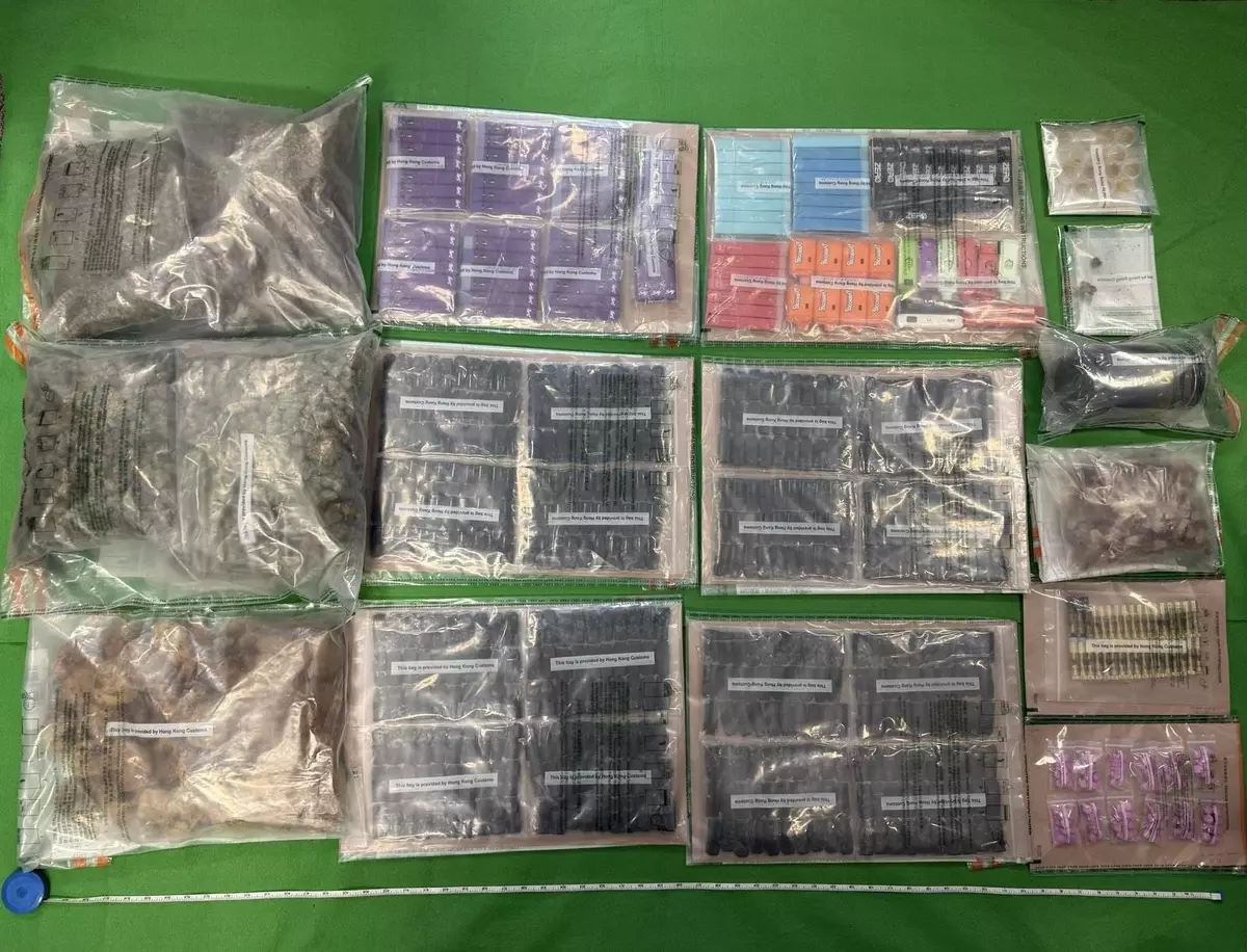 Hong Kong Customs yesterday (April 7) seized about 3.3 kilograms of suspected cannabis buds and a batch of suspected cannabis products, including cannabis cookies, cannabis oil vape capsules, vape sticks containing THC, as well as 120 tablets of suspected MDMA and a batch of suspected drug packaging paraphernalia, with a total estimated market value of about $1 million in Tai Po. A man, aged 20, suspected to be connected with the case was arrested.