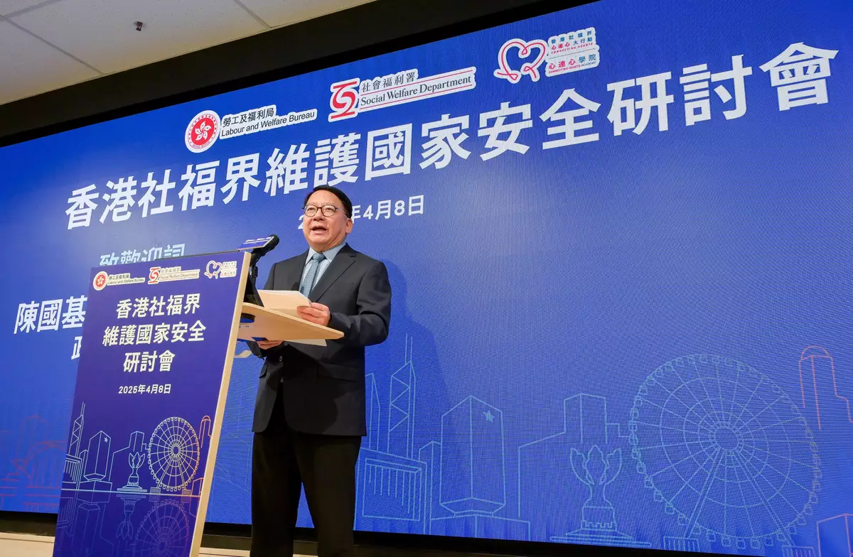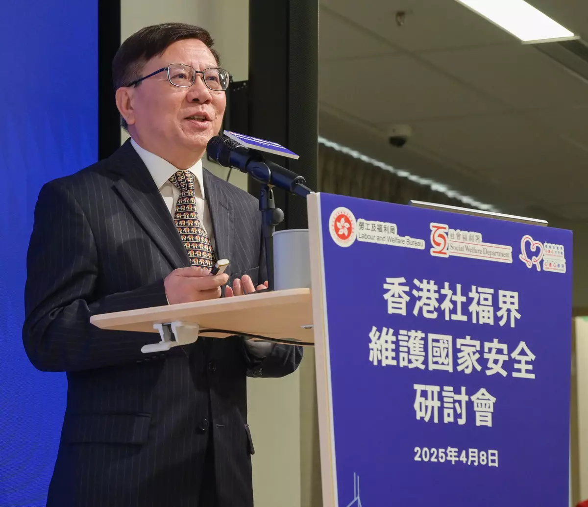 The symposium on safeguarding national security for the social welfare sector of Hong Kong, jointly organised by the Labour and Welfare Bureau (LWB) and the Social Welfare Department (SWD) of the Government of the Hong Kong Special Administrative Region (HKSAR) and the Connecting Hearts, was held today (April 8) to further enhance the sector's awareness of safeguarding national security.
