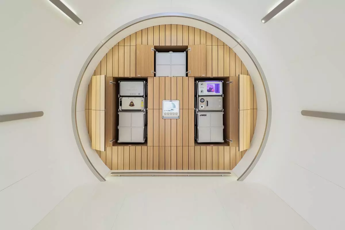Haven-1 Lab with payload partners inside the Haven-1 Experience: a 1:1 scale model of Haven-1.