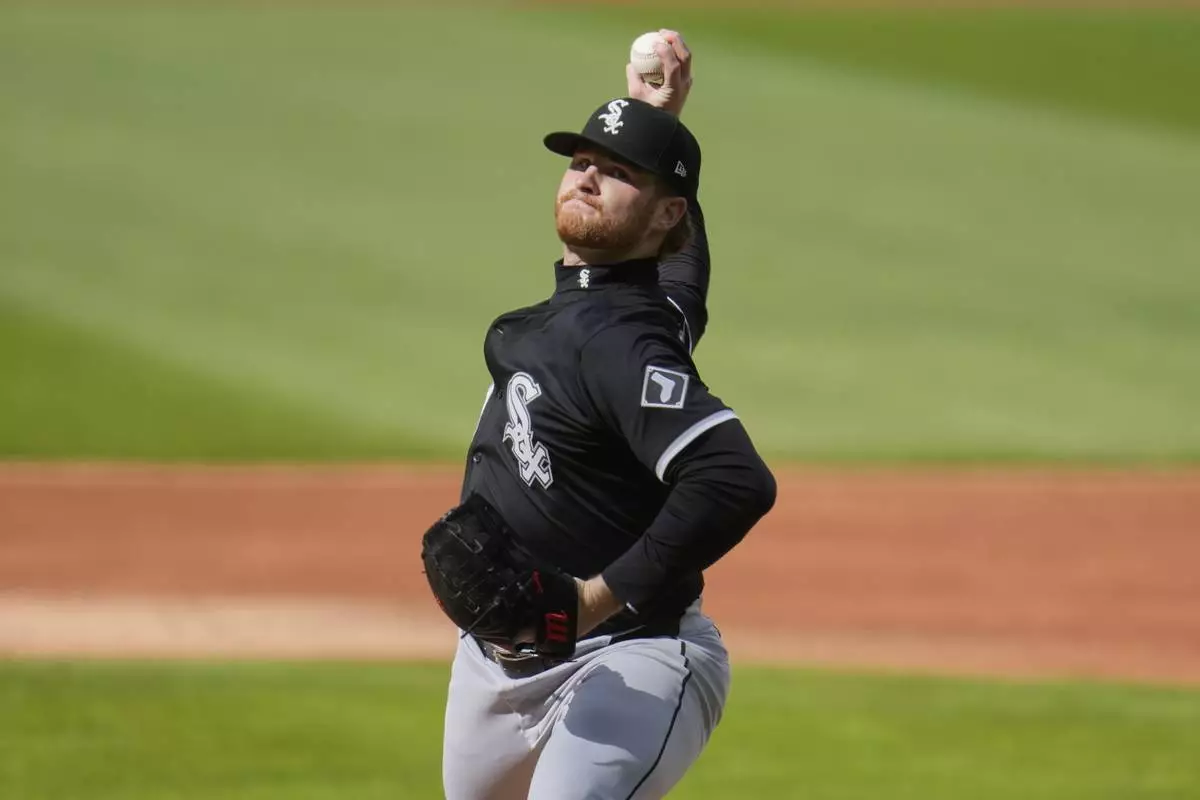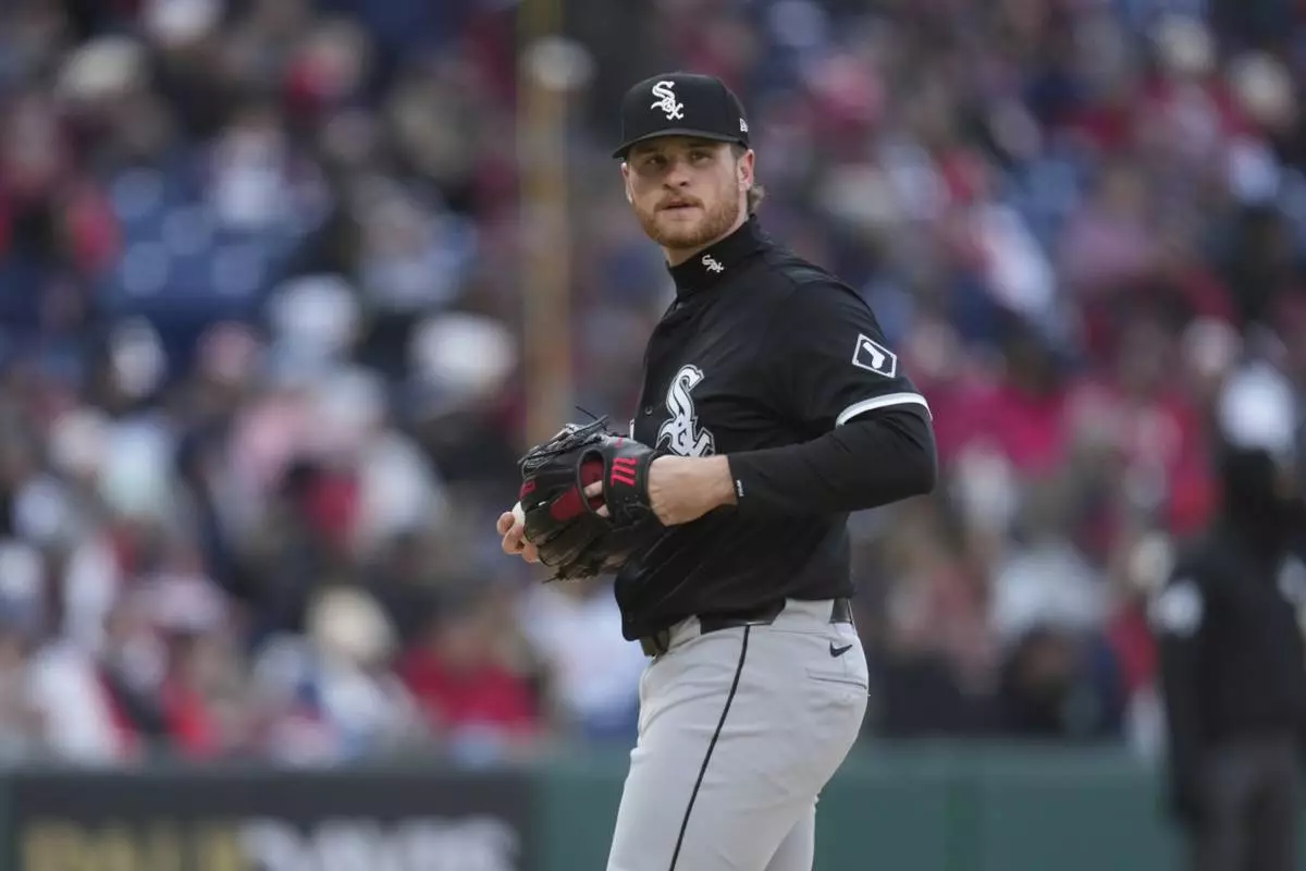 Chicago White Sox's Shane Smith pitches in the first inning of a baseball game against the Cleveland Guardians in Cleveland, Tuesday, April 8, 2025. (AP Photo/Sue Ogrocki)