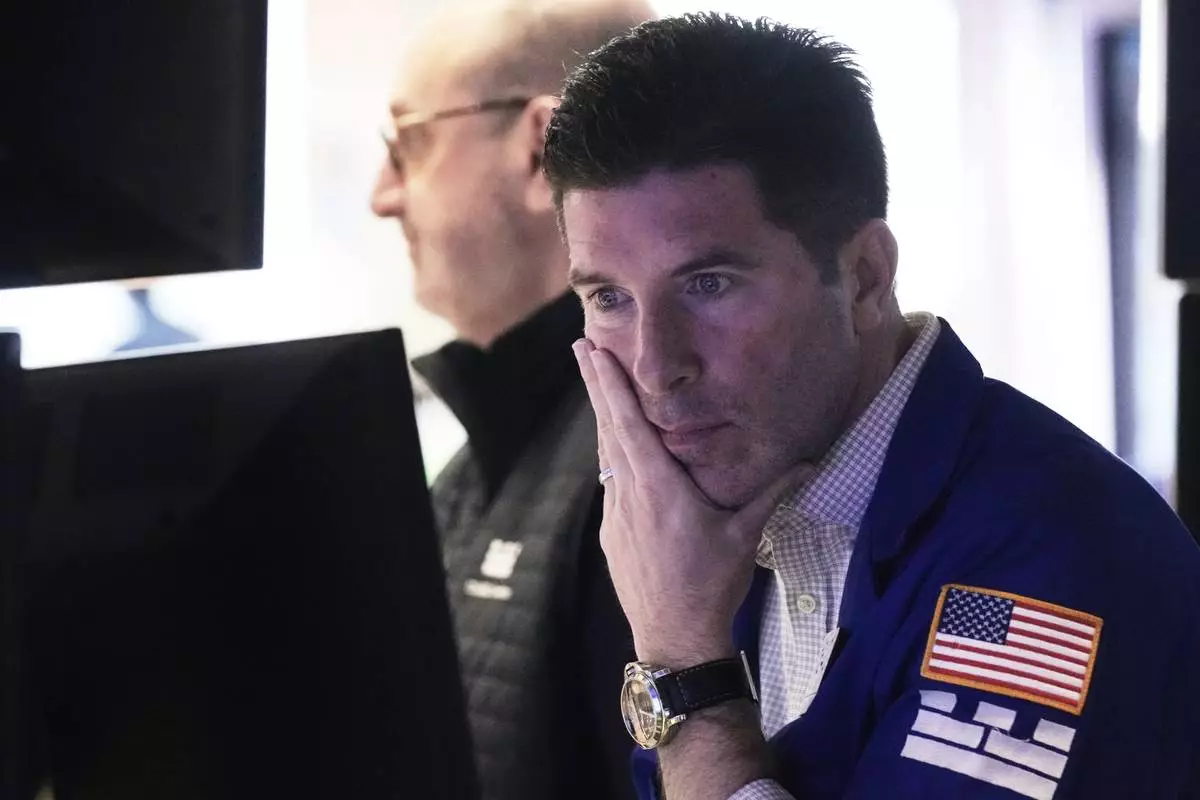 Specialist Gregg Maloney works at his post on the floor of the New York Stock Exchange, Thursday, April 10, 2025, in New York. (AP Photo/Richard Drew)