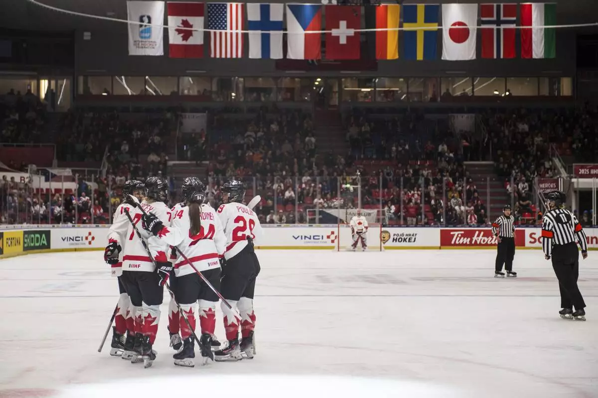 Laura Stacey had a goal and an assist, Micah Zandee-Hart, Natalie Spooner and Daryl Watts also scored and captain Marie-Philip Poulin recorded three assists in the Group A game.