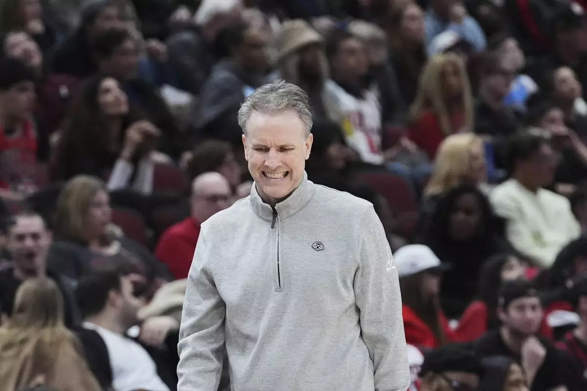 Washington Wizards head coach Brian Keefe reacts during the second half of an NBA basketball game against the Chicago Bulls in Chicago, Friday, April 11, 2025. (AP Photo/Nam Y. Huh)