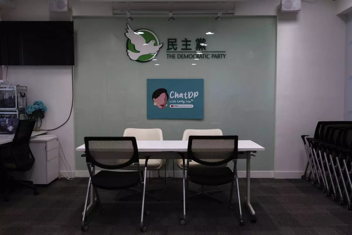 The reception area at the Democratic Party's office is seen in Prince Edward in Hong Kong on April 2, 2025. (AP Photo/May James)