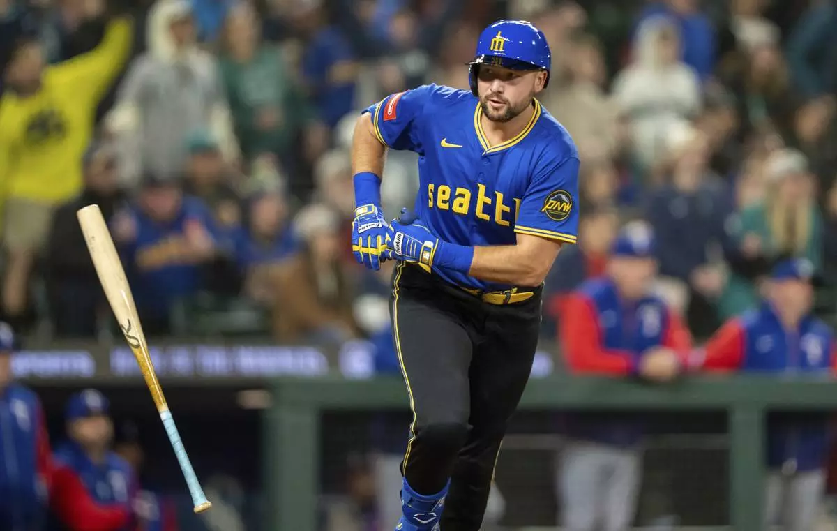 It was Raleigh’s third home run of the season and snapped a 1-for-16 cold spell at the plate. He hit a cutter from Texas’ Chris Martin 399 feet with an exit velocity of 109.7 miles per hour. Raleigh set a new Seattle record for home runs by a catcher with 96.