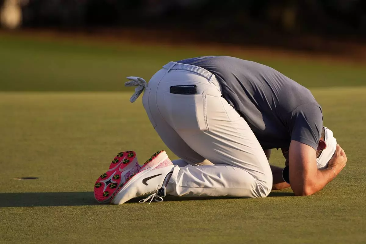 The reward was greater than he imagined, and it showed. He rapped in that final putt, raised both arms in the air and let the putter fall behind him. He covered his head, dropped to his knees, and before long his forehead was on the green as his chest heaved with emotion.