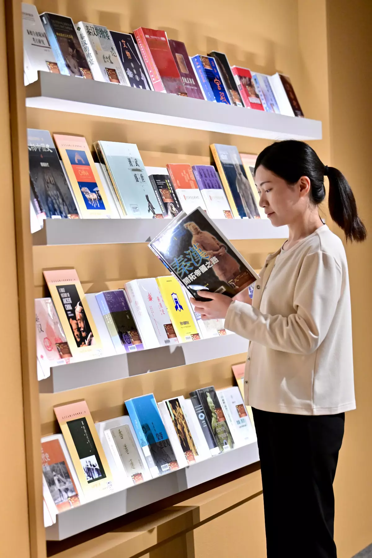 Besides featuring valuable cultural relics, the exhibition is also complemented by multimedia programmes to allow visitors to uncover the terracotta army's tailoring secrets and learn the Chinese characters and measurements in standardised units from the Qin and Han periods. The reading corner in the exhibition gallery displays a number of collections specially selected by the Hong Kong Public Libraries, covering topics of history of the Qin and Han dynasties and archaeology of Hong Kong. Through these collections, members of the public can learn about the long history, origins and development of China and explore the ancient Chinese civilisation. The interactive zone located in the main lobby on the first floor presents the development of the Lingnan region during the Qin and Han dynasties through displays, animations and interactive games.