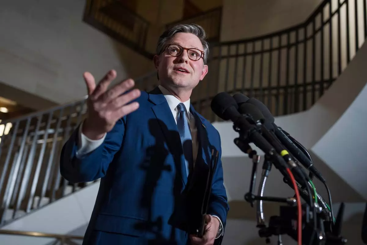 Speaker of the House Mike Johnson, R-La., answers questions from reporters following a closed-door briefing from Secretary of State Marco Rubio, Defense Secretary Pete Hegseth, and others about the U.S. military operation in Venezuela ordered by President Donald Trump, at the Capitol in Washington, Monday, Jan. 5, 2026. (AP Photo/J. Scott Applewhite)
