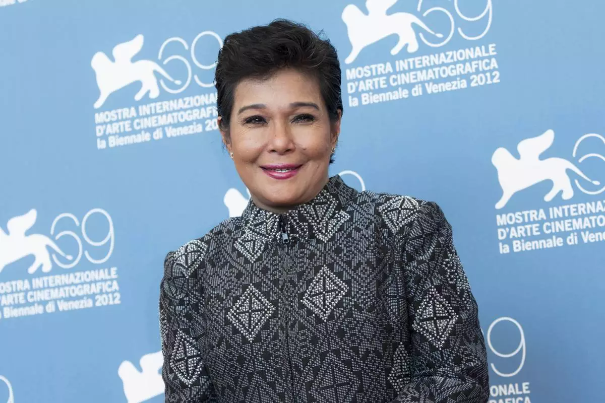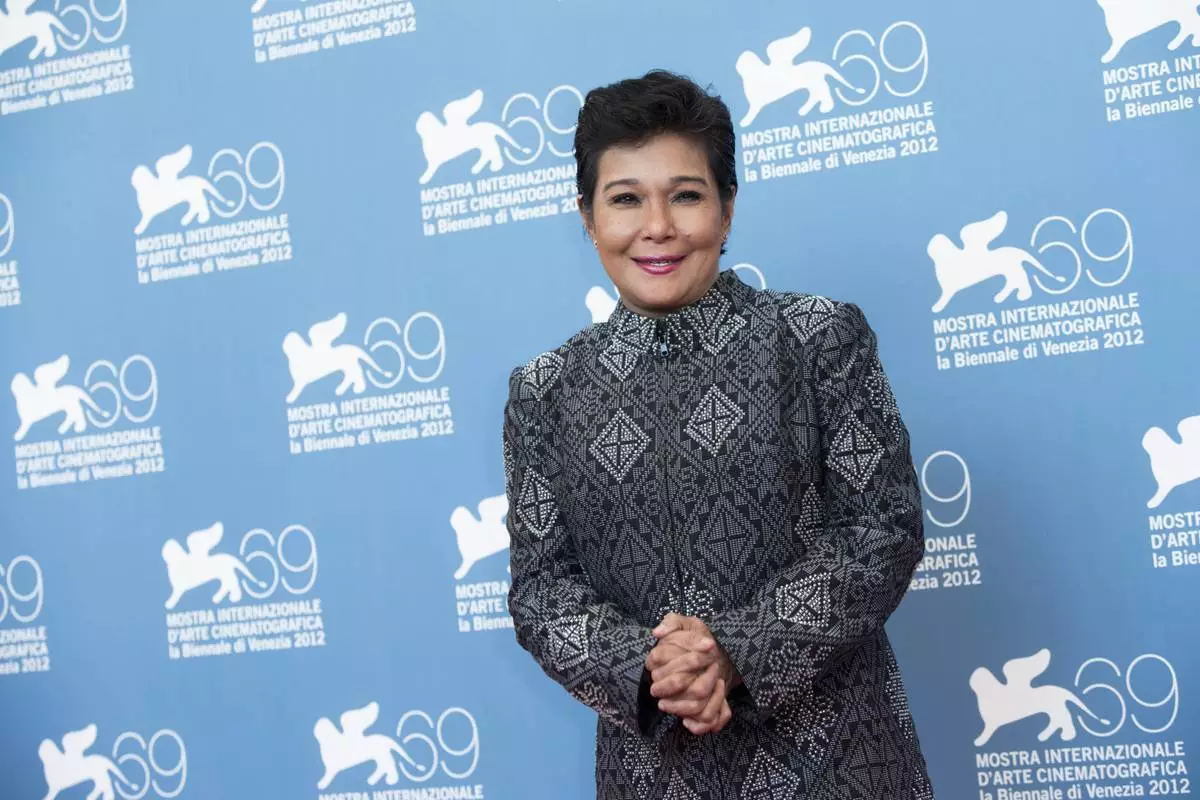 FILE - Actress Nora Aunor appears during the photo call for the film '"Sinapupunan" (Thy Womb) at the 69th edition of the Venice Film Festival in Venice, Italy, on Sept. 6, 2012. (AP Photo/Joel Ryan, File)