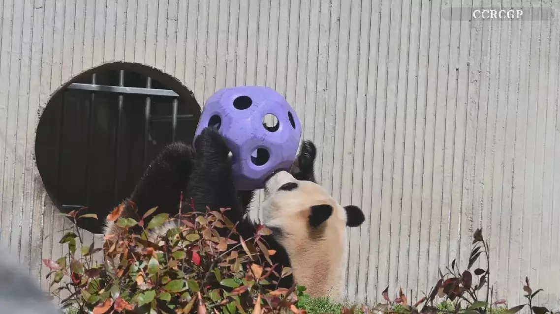 A newly released video records giant panda star Fu Bao playing with new toys at the China Conservation and Research Center for the Giant Panda.