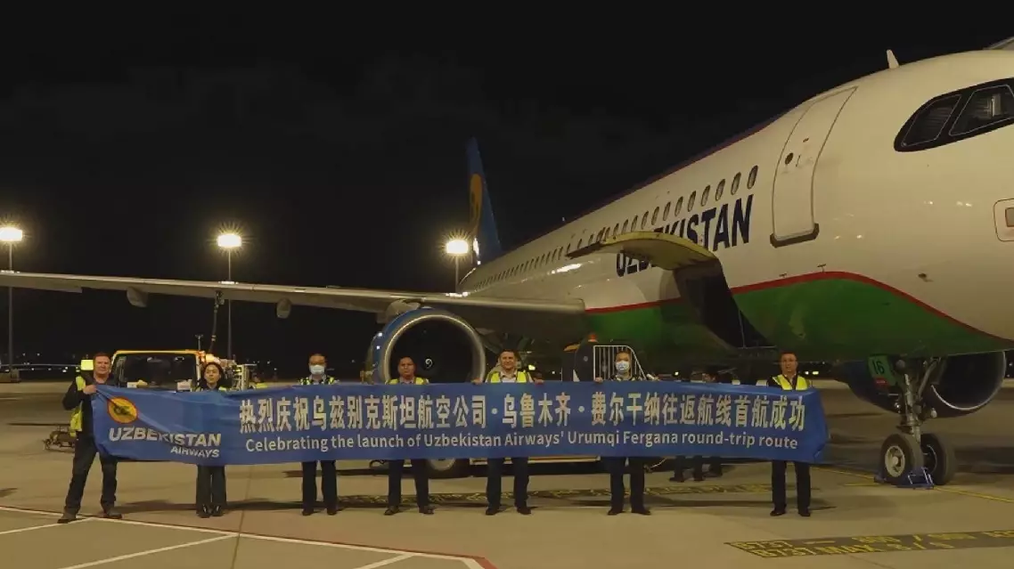 The new route is also China's first direct flight route to Uzbekistan's Fergana. The maiden flight carrying 112 passengers arrived at Urumqi Tianshan International Airport on Saturday morning.