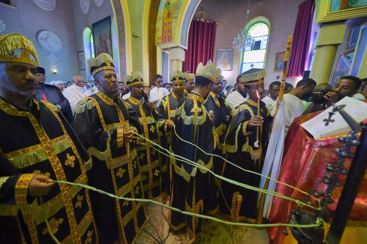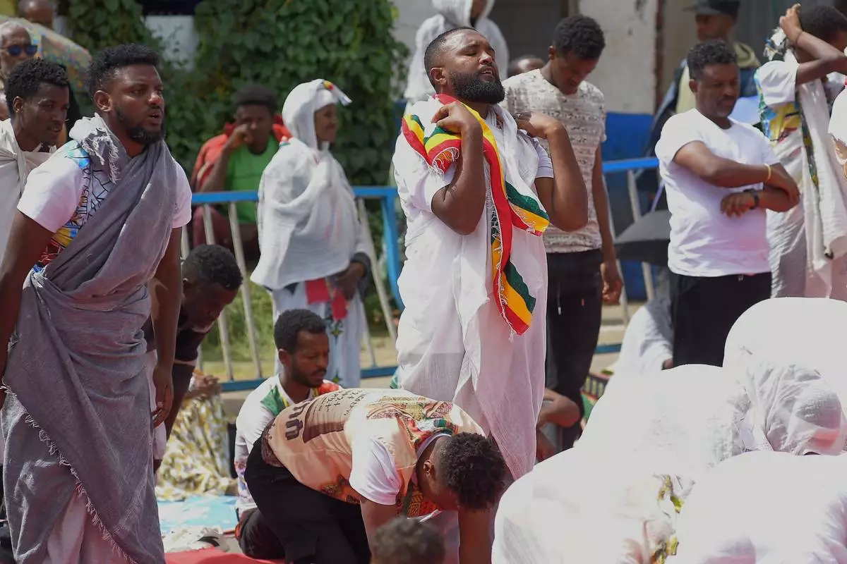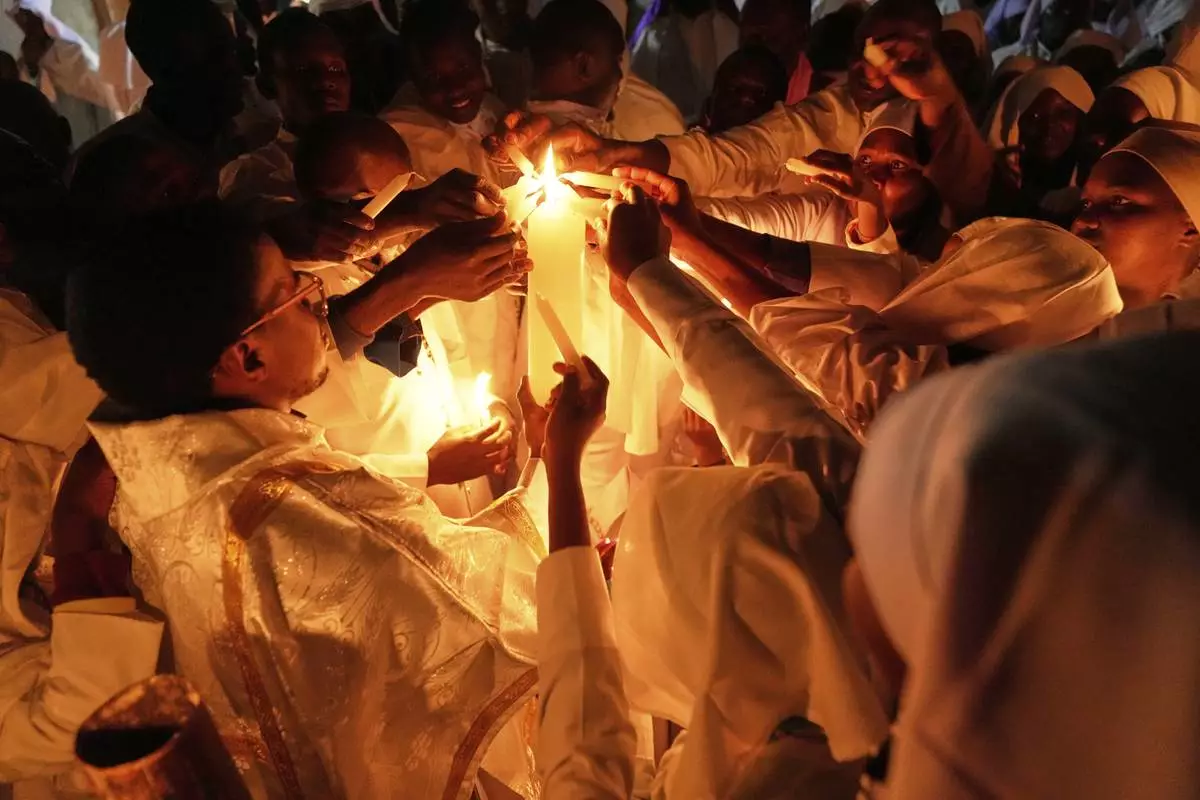Ethiopian Orthodox devotees gather to pray during Easter celebrations at St. John Orthodox Tewahedo Church in Addis Ababa, Ethiopia, Friday, April 18, 2025. (AP Photo)