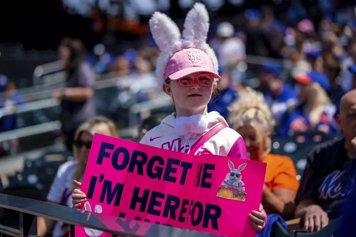 Fans wear bunny ears at the Easter baseball game between the New York Mets and the St. Louis Cardinals, Sunday, April 20, 2025, in New York. (AP Photo/Angelina Katsanis)