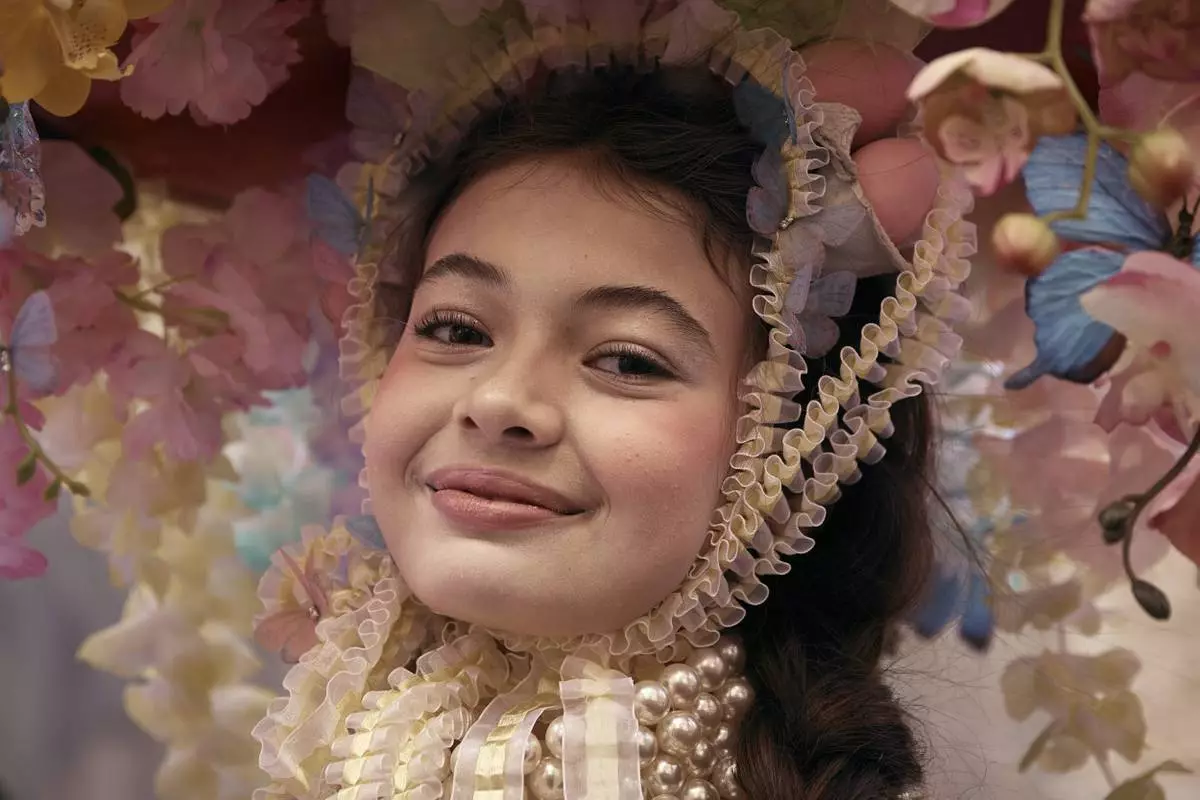 A reveler wearing decorated hat and costume pause for a portrait as she participates in the annual Easter Parade and Bonnet Festival in front of St. Patrick's Cathedral on Sunday, April 20, 2025, in New York. (AP Photo/Andres Kudacki)