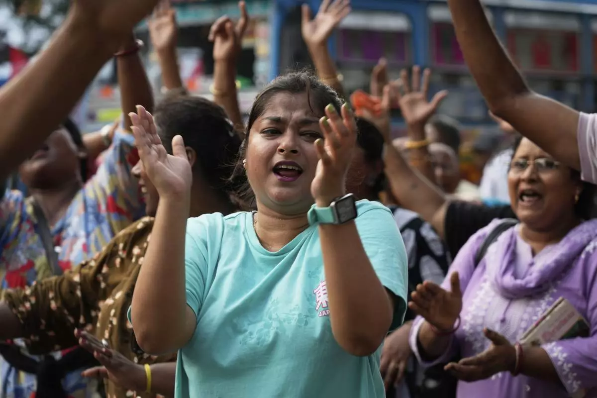 Indian Catholics dance in the street as the walk in a procession celebrating Easter Sunday commemorating the day when according to Christian tradition Jesus was resurrected in Jerusalem two millennia ago, in Kolkata, India, Sunday, April 20, 2025. (AP Photo/Bikas Das)