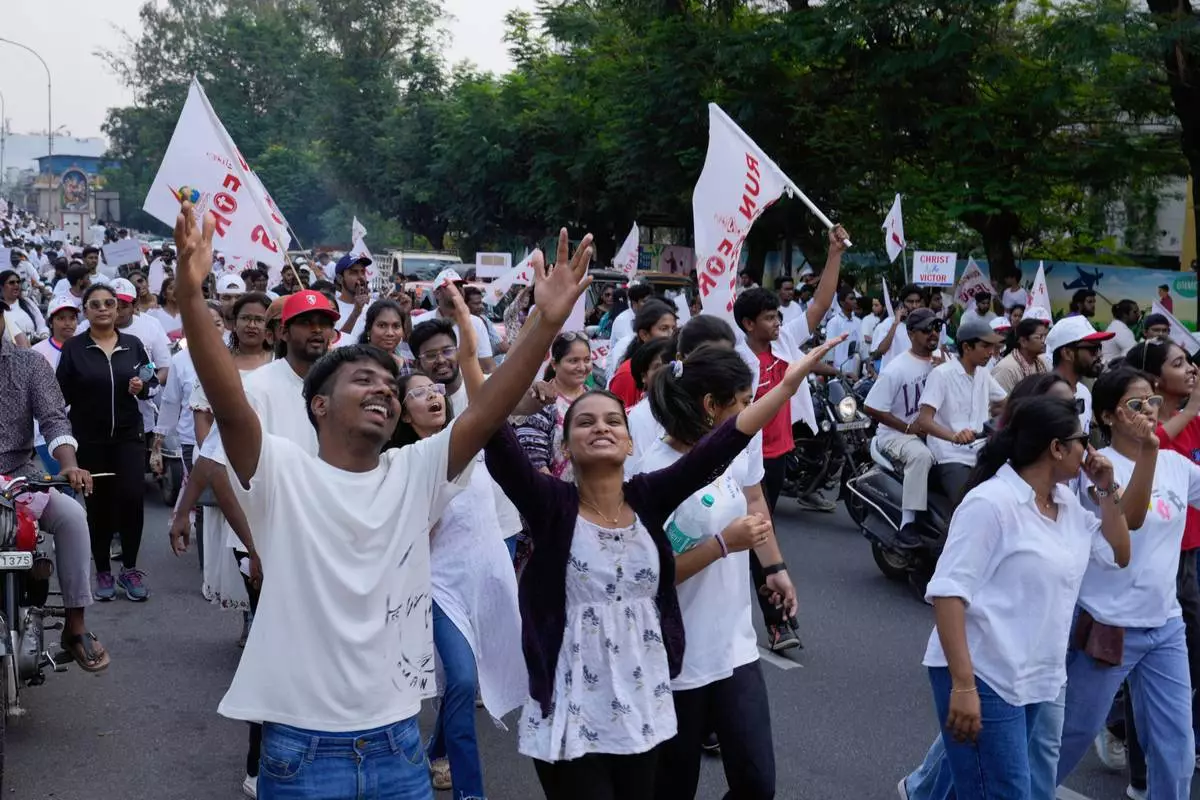 Christians participate in a "Run for Jesus" rally on the eve of Easter Sunday in Hyderabad, India, Saturday, April 19, 2025. (AP Photo/Mahesh Kumar A.)
