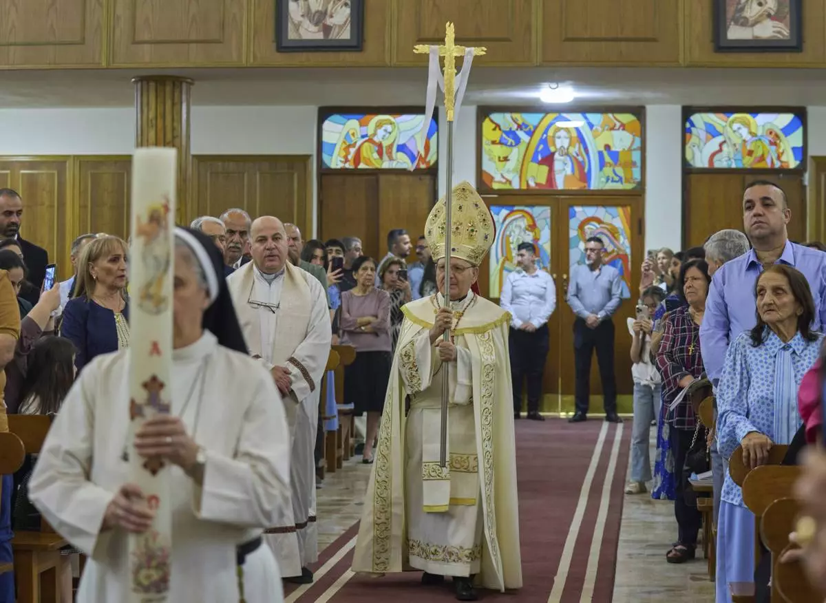 Iraqi Christians attend Easter religious services at Mar Youssif Chaldean Church in Baghdad, Iraq, Saturday, April 19, 2023. (AP Photo/Hadi Mizban)