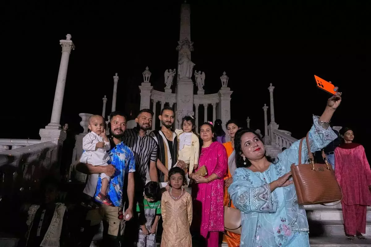 A Christian family take selfie after attending a midnight Easter Mass at St. Patrick's Cathedral Church, in Karachi, Pakistan, Sunday, April 20, 2025. (AP Photo/Fareed Khan)