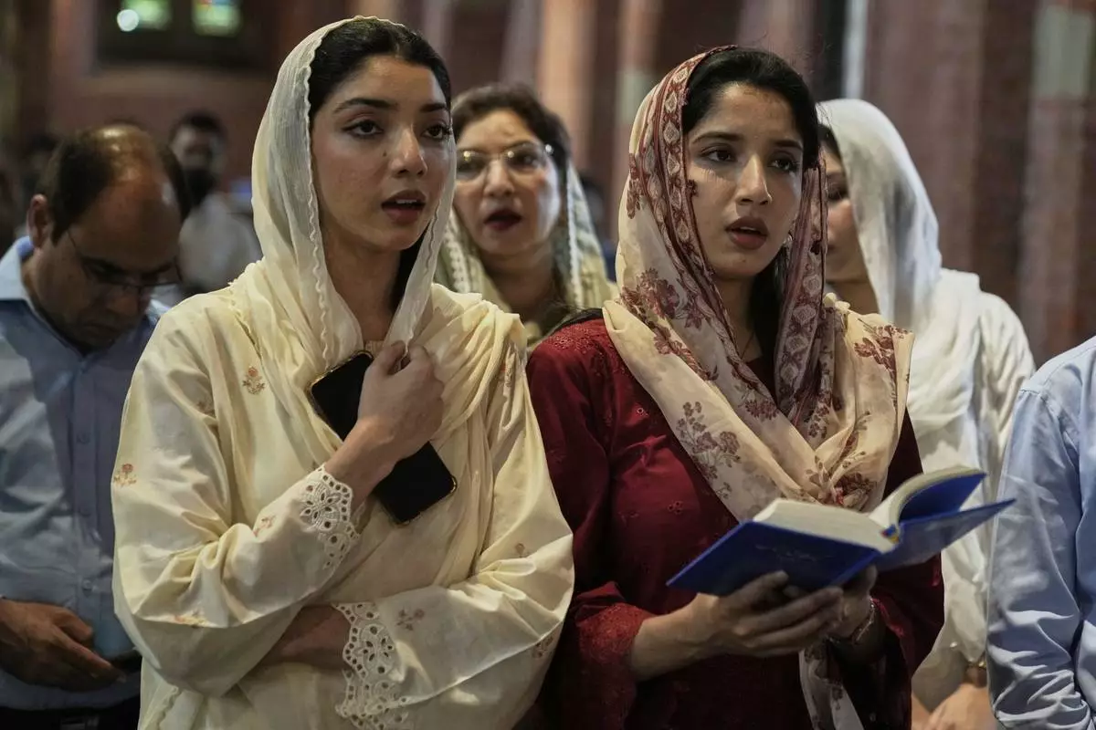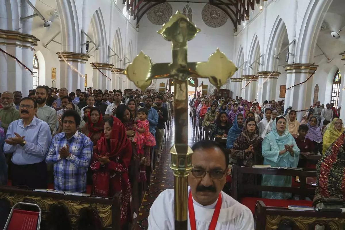 Christians attend an Easter Mass at the St. John's Cathedral, in Peshawar, Pakistan, Sunday, April 20, 2025. (AP Photo/Muhammad Sajjad)