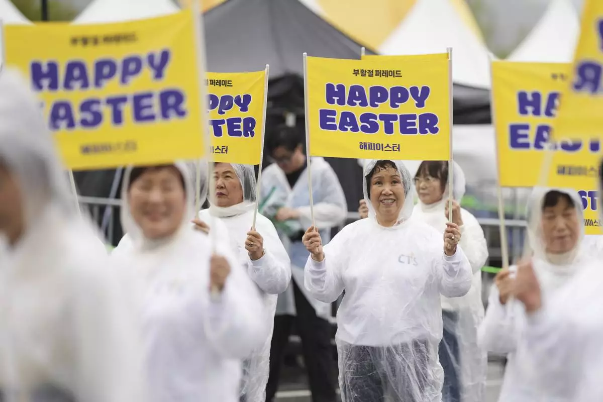 Participants attend the Easter parade in Seoul, South Korea, Saturday, April 19, 2025. (AP Photo/Lee Jin-man)