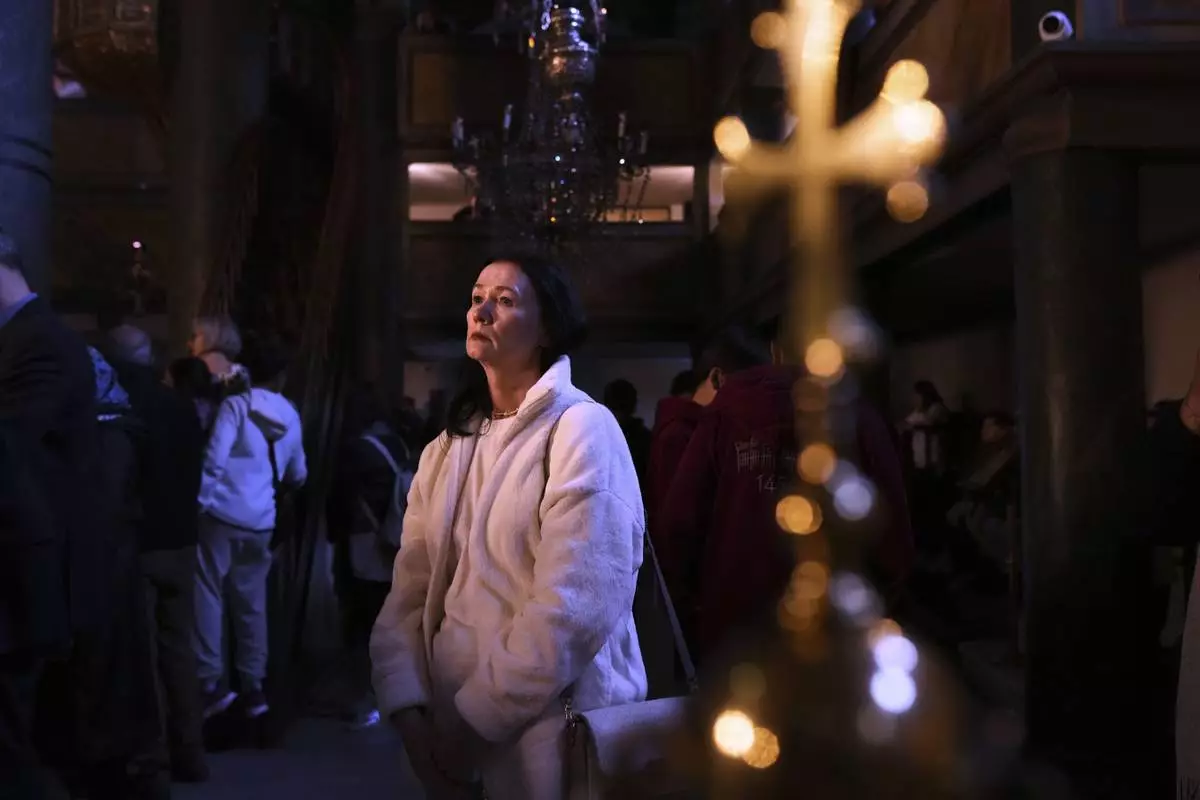 A Christian Orthodox worshipper attends the Easter Sunday Resurrection liturgy, marking the end of the Holy Week at the Patriarchal Church of St. George in Istanbul, Turkey, Sunday, April 20, 2025. (AP Photo/Emrah Gurel)