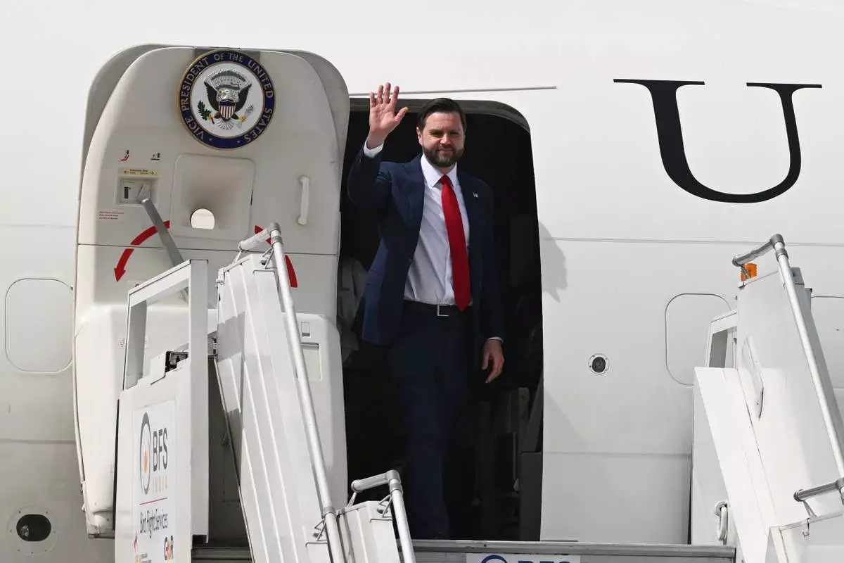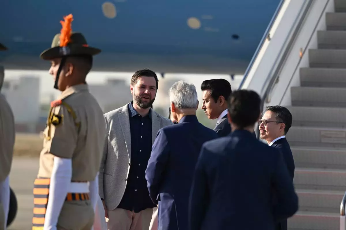 U.S. Vice President JD Vance arrives in New Delhi, India, Monday, April 21, 2025. (Kenny Holston/The New York Times via AP, Pool)