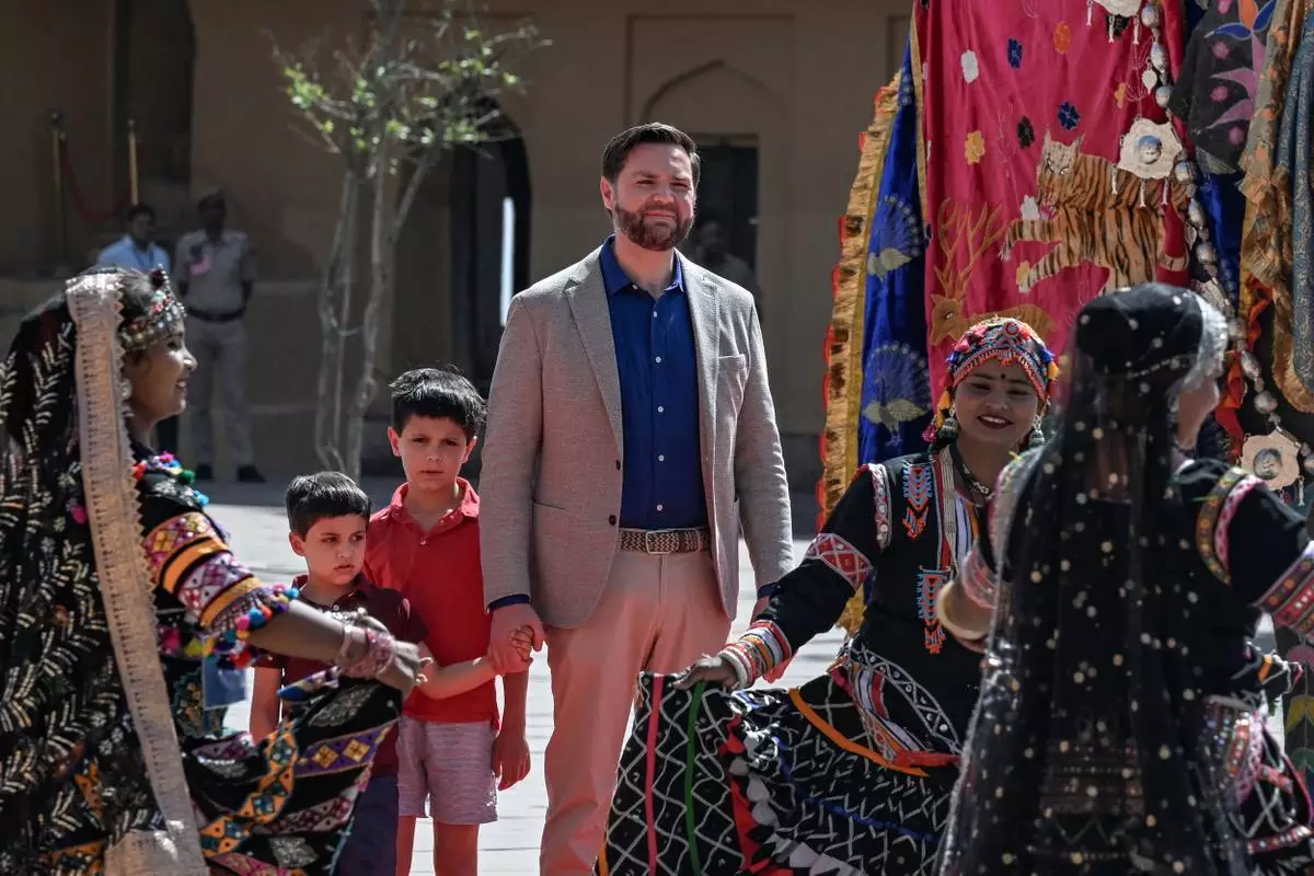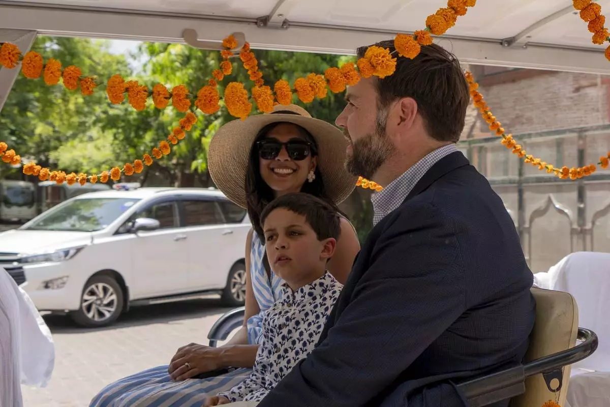 U.S. Vice President JD Vance and his family return after a visit to the Taj Mahal in Agra, India Wednesday, April 23, 2025.(AP Photo/Rajesh Kumar Singh)