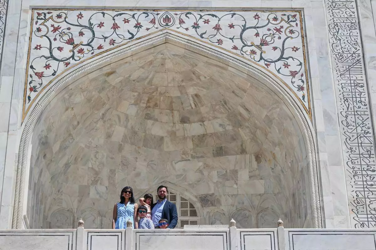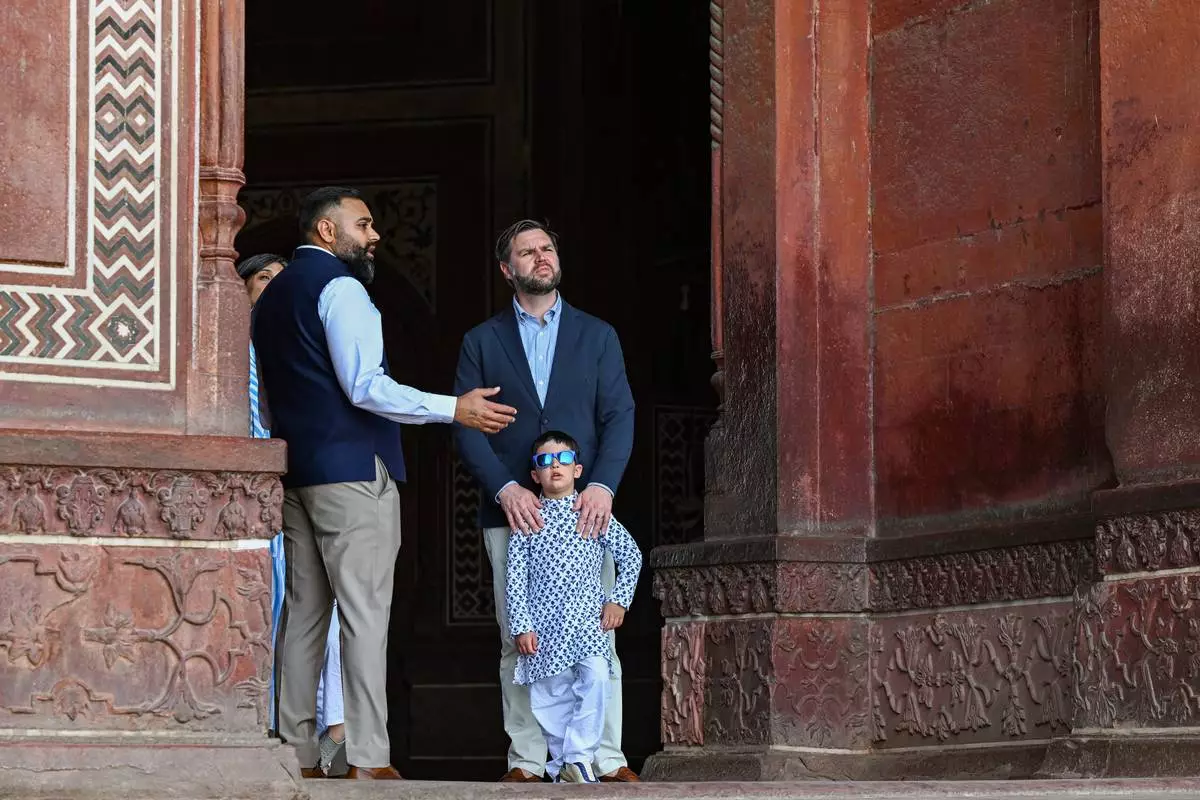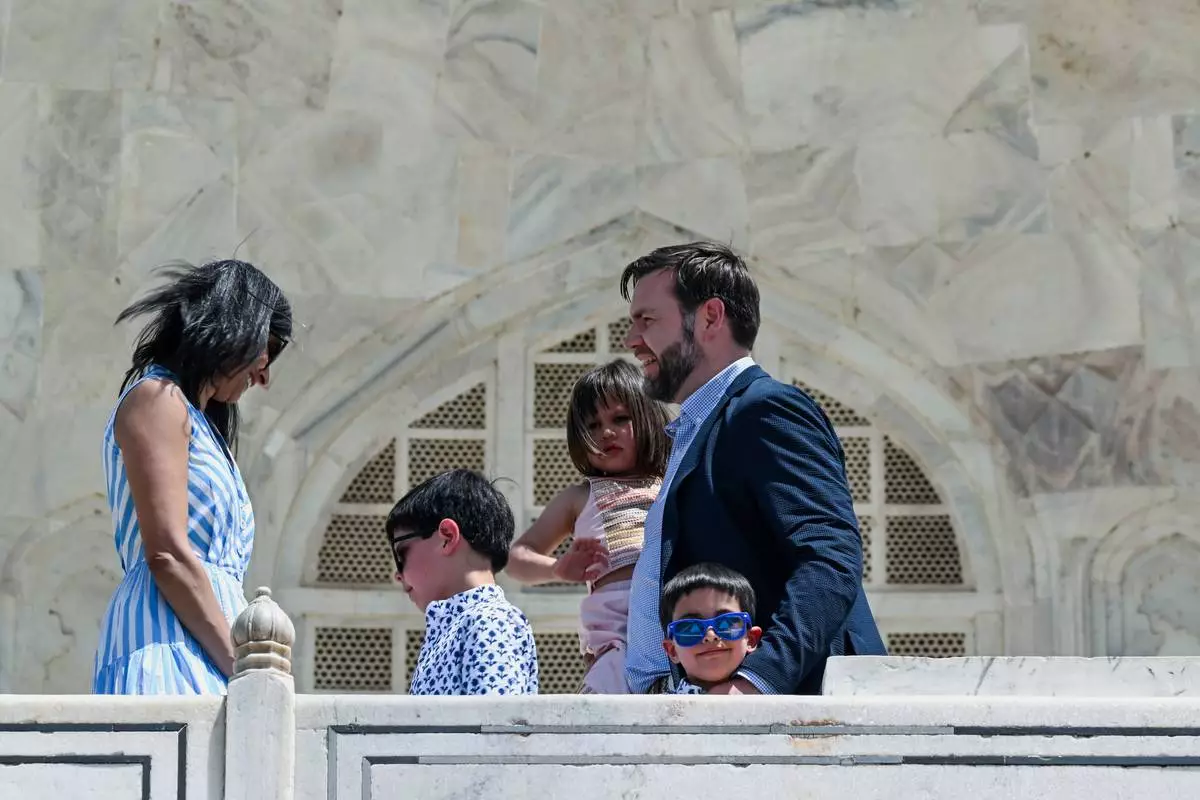 U.S. Vice President JD Vance and his family visit the Taj Mahal, in Agra, India, Wednesday, April 23, 2025. (Kenny Holston/The New York Times via AP, Pool)