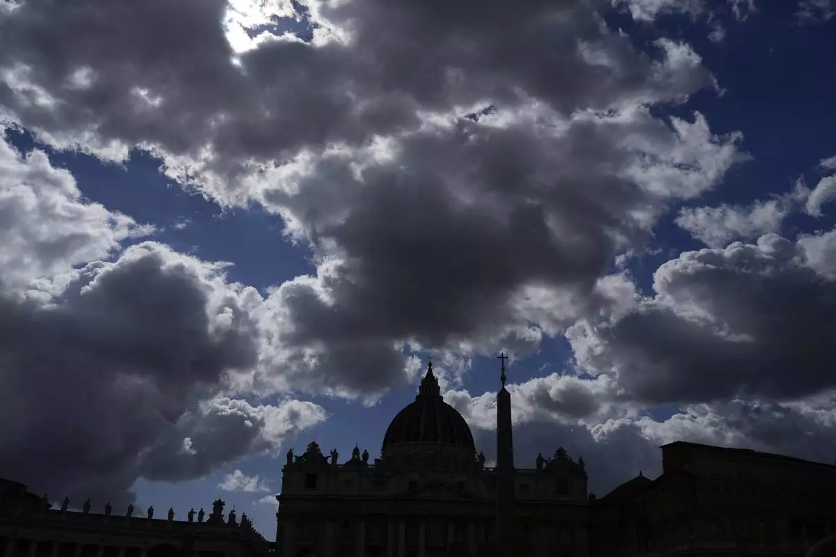 Clouds over St. Peter's Square at the Vatican, Thursday April 24, 2025. (AP Photo/Gregorio Borgia)