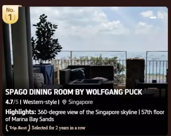 SINGAPORE, April 25, 2025 /PRNewswire/ -- Trip.com unveiled its 2025 Trip.Best Global Rankings, the second edition of its AI-powered travel rankings designed to help travellers select the best experiences each destination has to offer. The latest rankings, featuring the top 100 stays, attractions, and restaurants globally and in Asia, highlight travellers' appreciation for Singapore's luxury hotels, restaurants and attractions, with local establishments in these categories securing top spots on the Asia and Global 2025 Trip.Best lists.