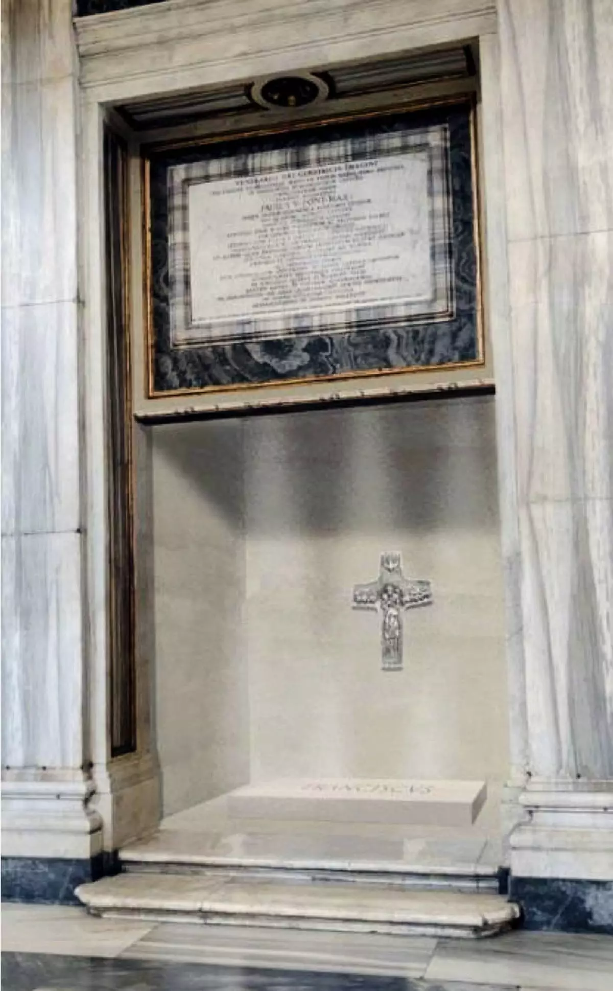 The tomb is placed in a niche next to the chapel where the Salus Populi Romani icon that the pope revered is located, and in a part of the basilica that was once a door to an adjacent palace where four popes lived. During his 12-year papacy, Francis would pray before the icon before and after each foreign trip.