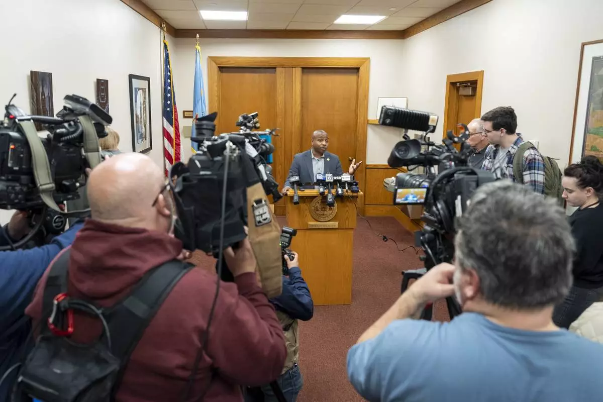 Milwaukee Mayor Cavalier Johnson addresses the media Friday, April 25, 2025, in Milwaukee after county Judge Hannah Dugan was arrested on courthouse grounds. (AP Photo/Andy Manis)