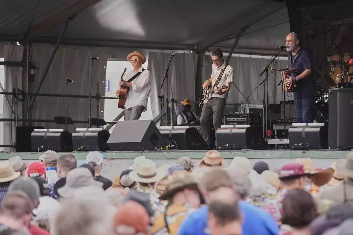 The Honey Island Swamp Band performs at the New Orleans Jazz & Heritage Festival in New Orleans, Friday, April 25, 2025. (AP Photo/Gerald Herbert)