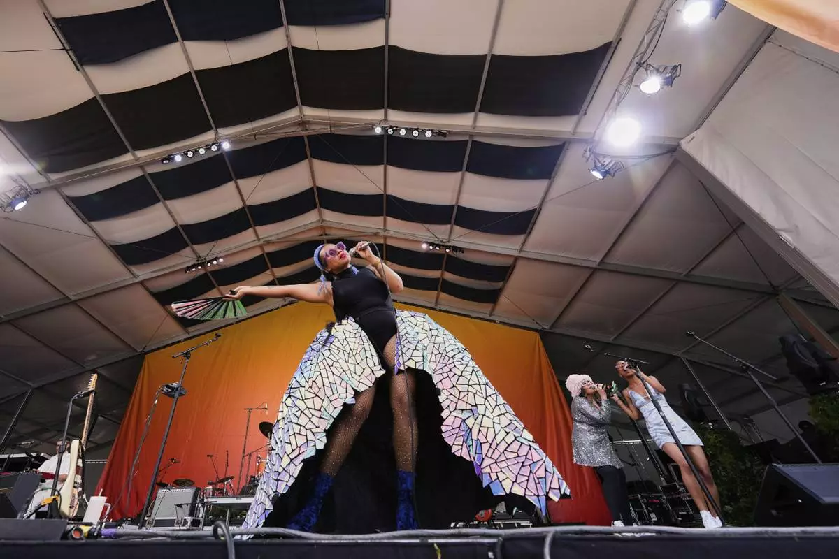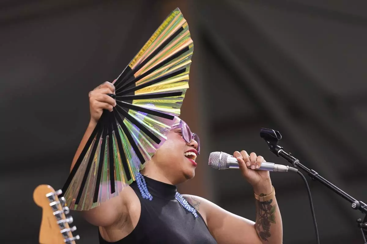 Anjelika "Jelly" Joseph performs with her band Galactic at the New Orleans Jazz & Heritage Festival in New Orleans, Sunday, May 4, 2025. (AP Photo/Gerald Herbert)