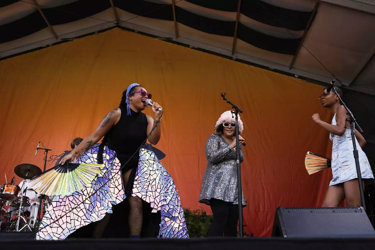 Vasti Jackson performs with Damon Batiste and NOSACONN All Stars during the second weekend of the New Orleans Jazz & Heritage Festival on Thursday, May 1st, 2025, at Fair Grounds Race Course in New Orleans. (Photo by Amy Harris/Invision/AP)