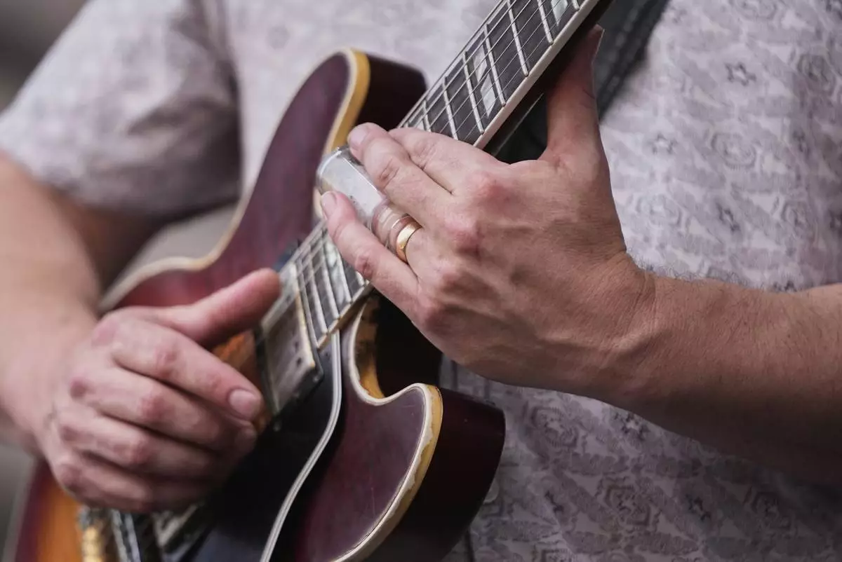 Leo Nocentelli performs during the first weekend of the New Orleans Jazz & Heritage Festival on Friday, April 25, 2025, at Fair Grounds Race Course in New Orleans. (Photo by Amy Harris/Invision/AP)