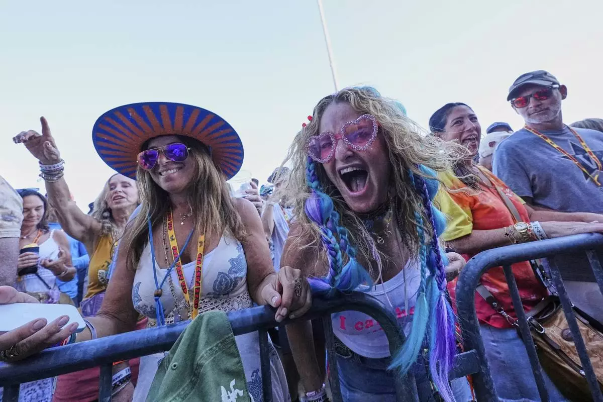Fans react as My Morning Jacket performs at the New Orleans Jazz & Heritage Festival in New Orleans, Sunday, May 4, 2025. (AP Photo/Gerald Herbert)