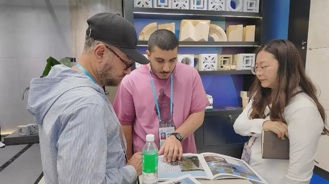 "The raw materials used in the product are mostly industrial solid waste. During the processing, some waste residues, scraps and leftovers can be broken up and reused," said exhibitor You Minmin with the Guangzhou Jinyitao Ceramics Group Co., Ltd.