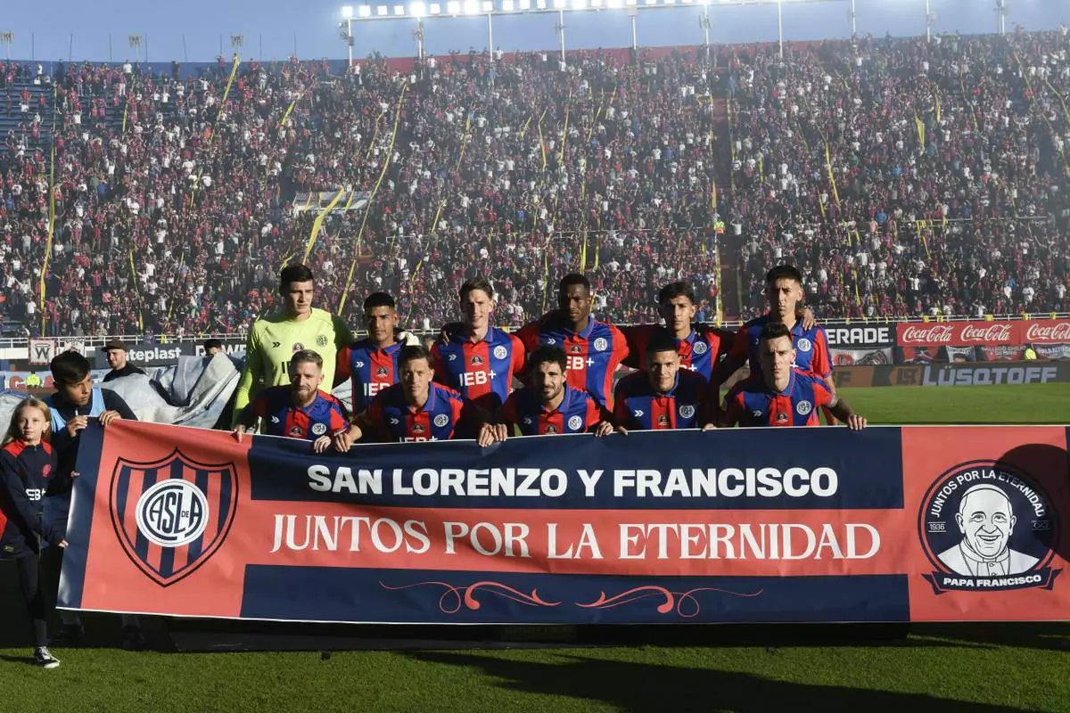 San Lorenzo players wore a patch on their shirts with an image of Jorge Mario Bergoglio smiling and wearing his papal robes, accompanied by the phrase “Together for Eternity.” Visiting side Rosario Central won 1-0 thanks to an injury time goal.