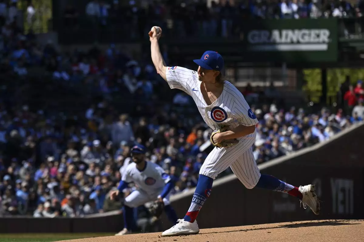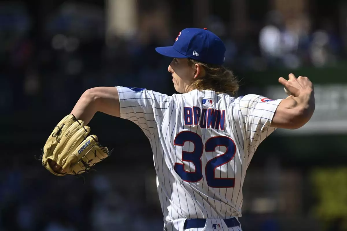 Chicago Cubs pitcher Ben Brown (32) delivers during the first inning of a baseball game against the Philadelphia Phillies, Saturday, April 26, 2025, in Chicago. (AP Photo/Matt Marton)