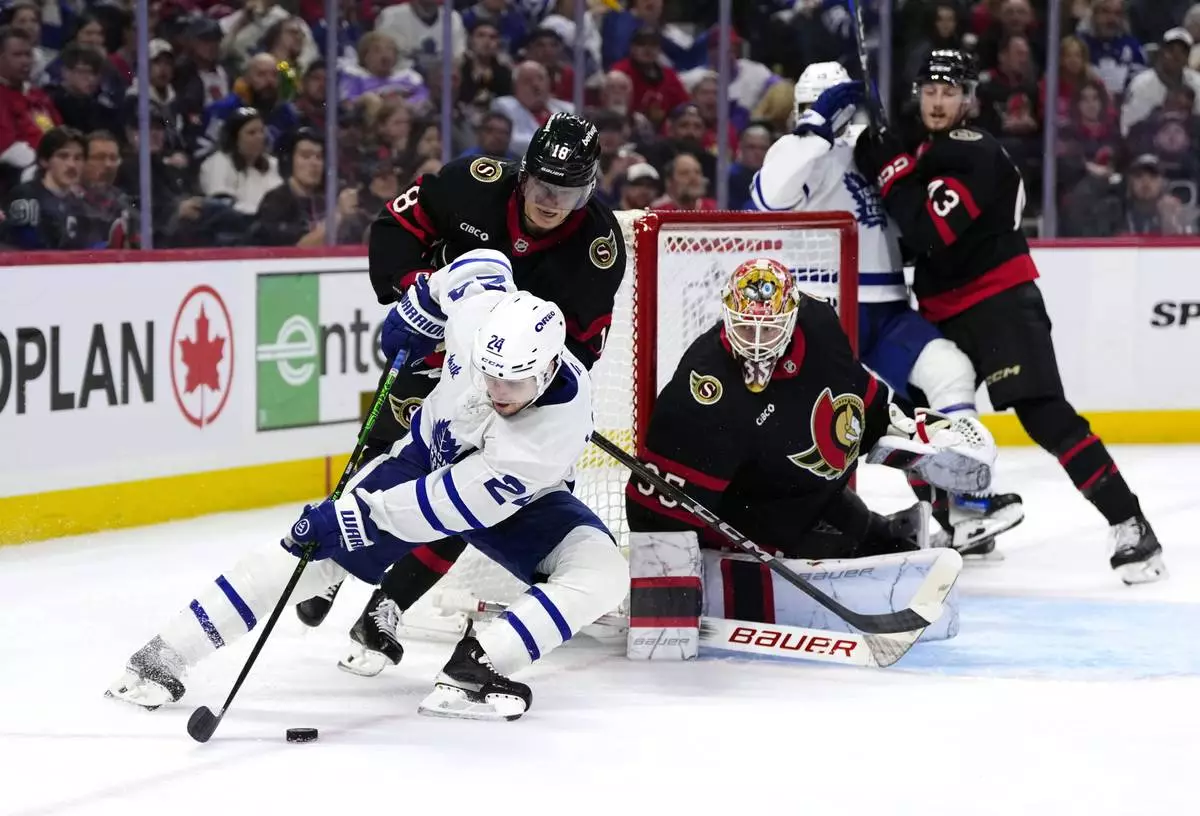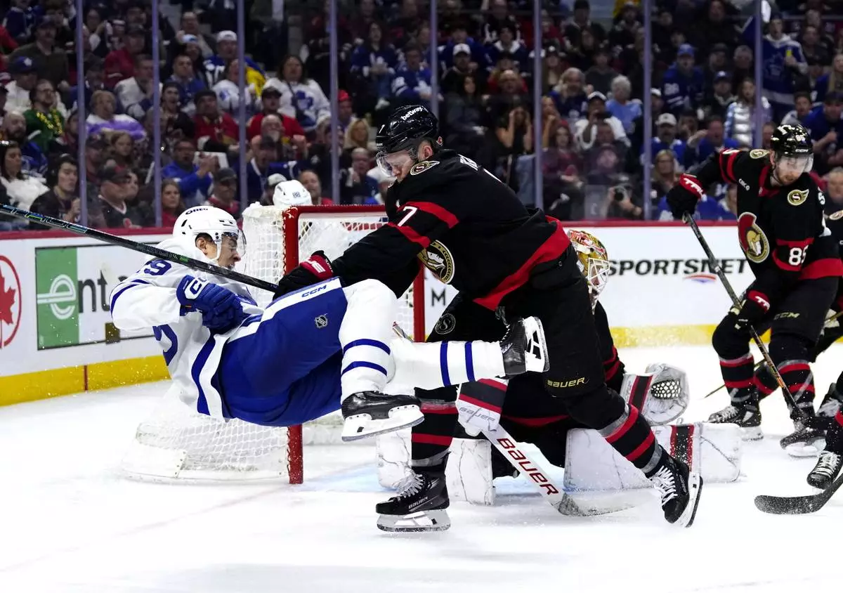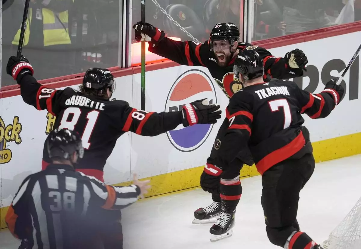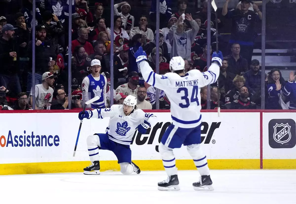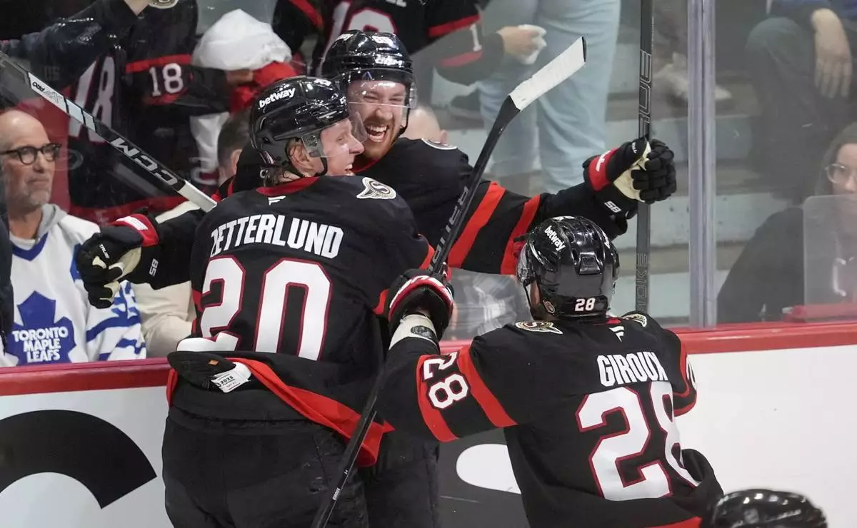 OTTAWA, Ontario (AP) — Defenseman Jake Sanderson scored on a long wrist shot from the left boards at 17:42 of overtime and the Ottawa Senators beat the Toronto Maple Leafs 4-3 on Saturday night to force a fifth game in the first-round series.