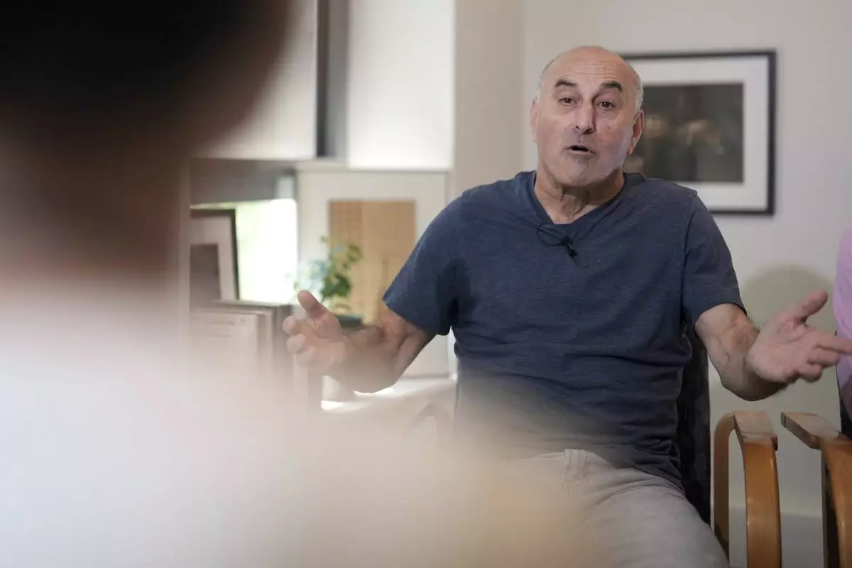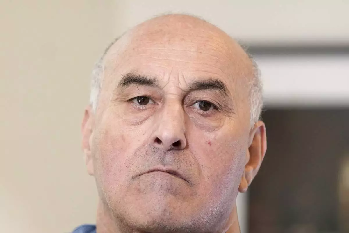 Yunice Abbas, one of the men accused in the 2016 armed robbery of Kim Kardashian, reacts during an interview with the Associated Press, Tuesday, April 22, 2025 in Paris. (AP Photo/Thibault Camus)